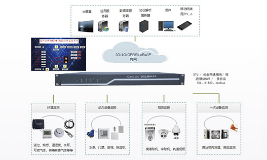 站端監(jiān)控包括各種探測(cè)傳感器、數(shù)據(jù)采集單元、無(wú)線無(wú)源測(cè)溫系統(tǒng)、局放在線監(jiān)測(cè)系統(tǒng)、門(mén)禁系統(tǒng)幾個(gè)部分。站端監(jiān)控安裝在配電室實(shí)時(shí)監(jiān)測(cè)現(xiàn)場(chǎng)實(shí)際環(huán)境狀態(tài)及各項(xiàng)參數(shù)如視頻明火、煙霧、人員非法入侵動(dòng)物入侵、環(huán)境溫濕度、門(mén)禁、空調(diào)狀態(tài)、臭氣含量、開(kāi)關(guān)柜母排溫度、開(kāi)關(guān)柜內(nèi)局放等讀取二次電力設(shè)備監(jiān)控系統(tǒng)電量參數(shù)及報(bào)警事件信息通過(guò)通信網(wǎng)絡(luò)將現(xiàn)場(chǎng)各項(xiàng)參數(shù)及狀態(tài)上傳···